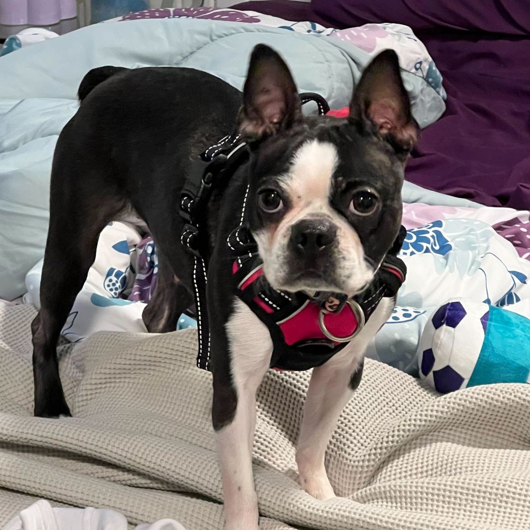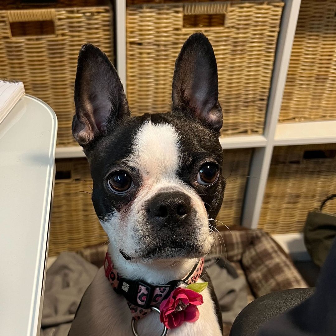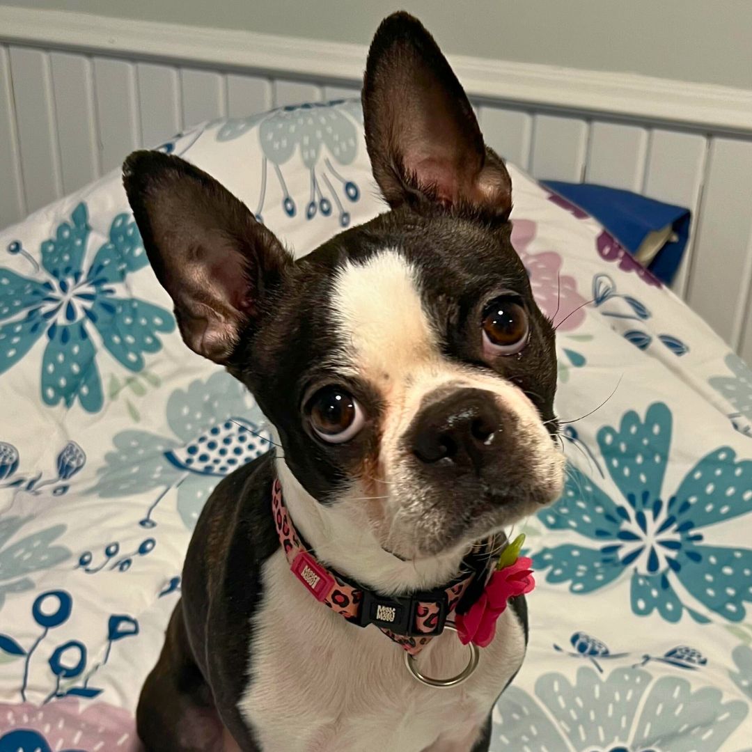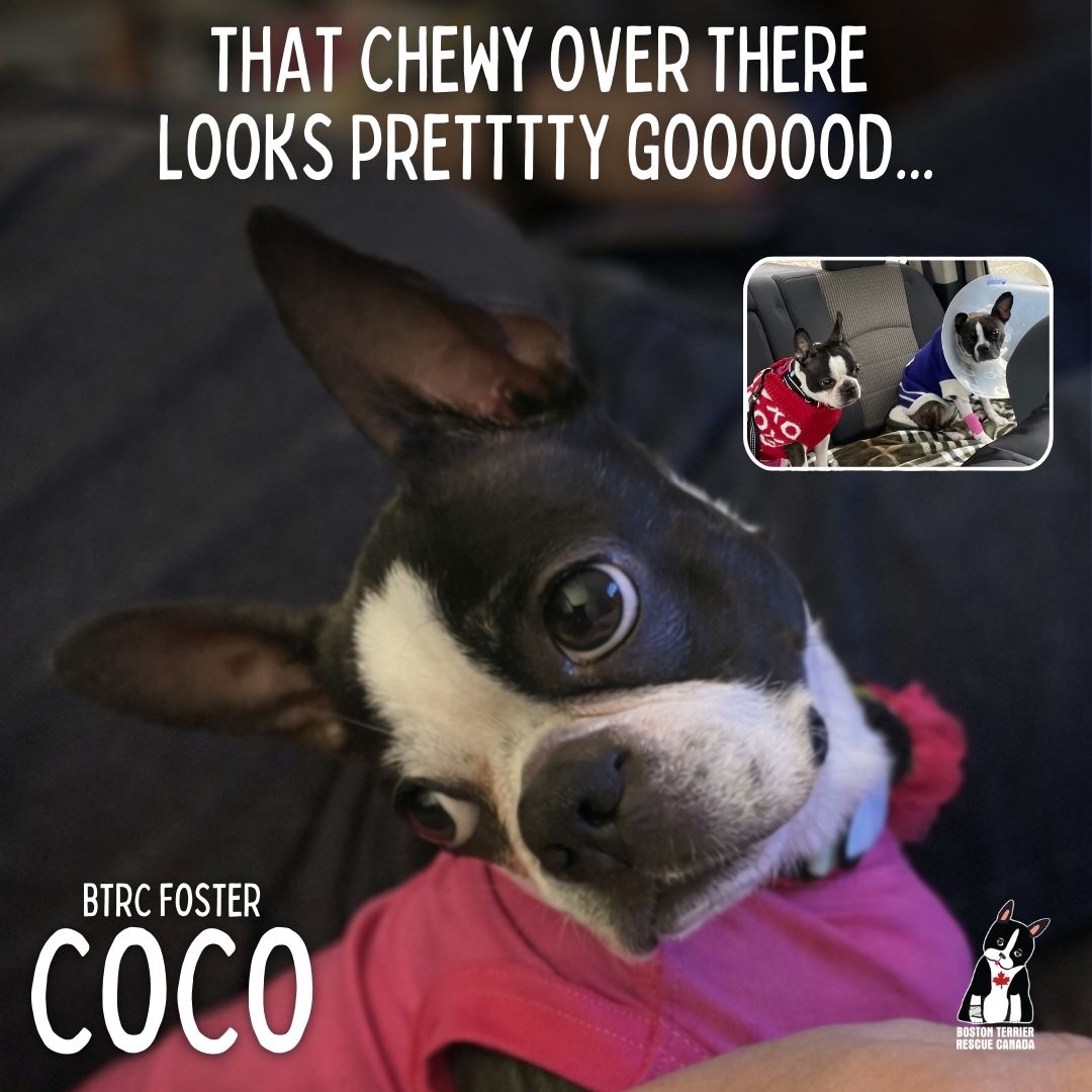 Coco has been nothing but sweet, gentle, and playful since arriving in care. She’s getting along wonderfully with the resident Boston Terrier and has shown she can hold her own in an intense game of bitey face!