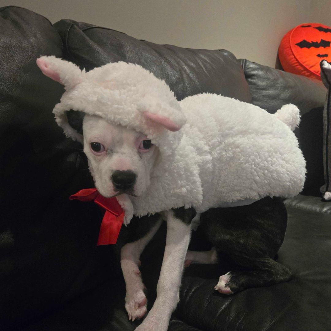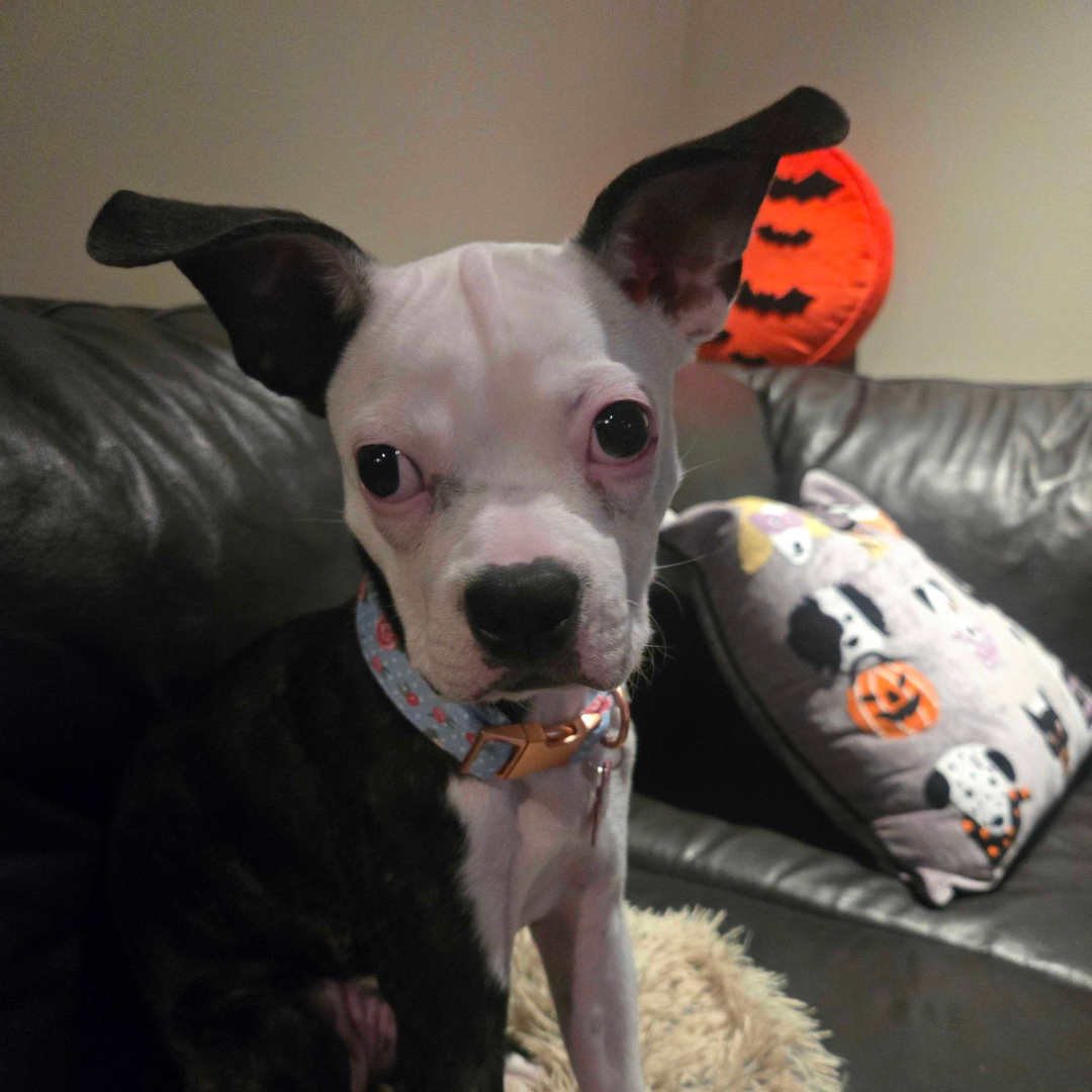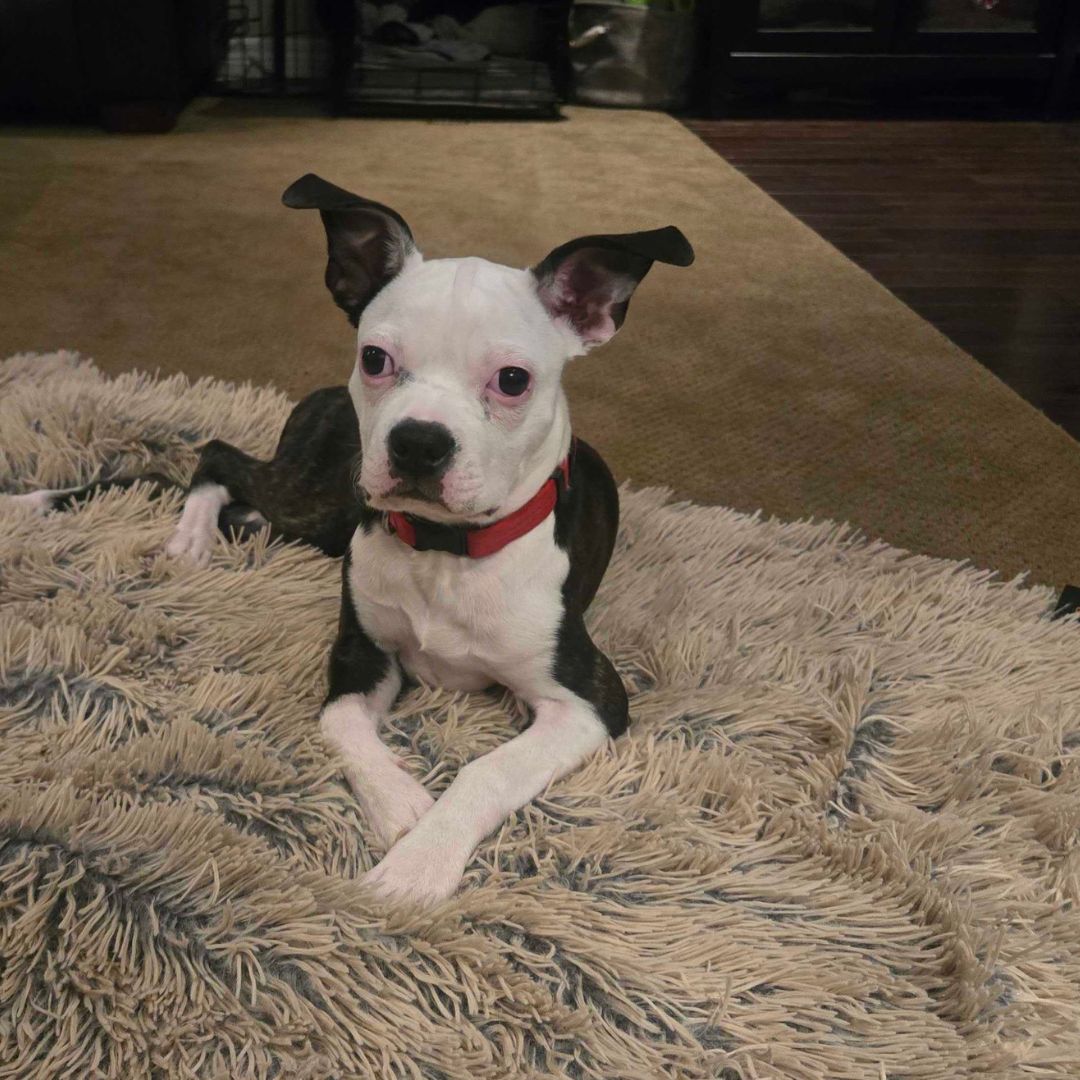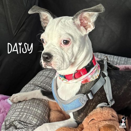 This four-month-old Boston Terrier–Boxer mix was brought home on impulse to remove her from a not-so-great situation. While her owner’s heart was in the right place, it soon became clear that Daisy’s puppy energy and training needs just weren’t a good fit for their lifestyle or home. Wanting the best for her, Daisy was transferred to BTRC so she could get the structure and support she needs to thrive.