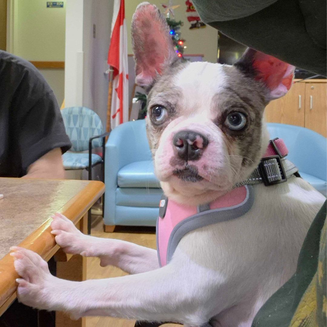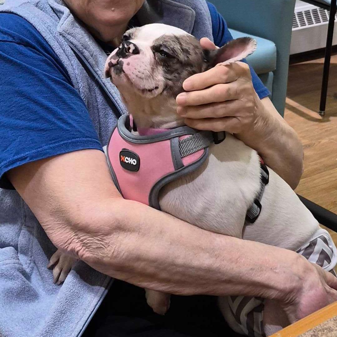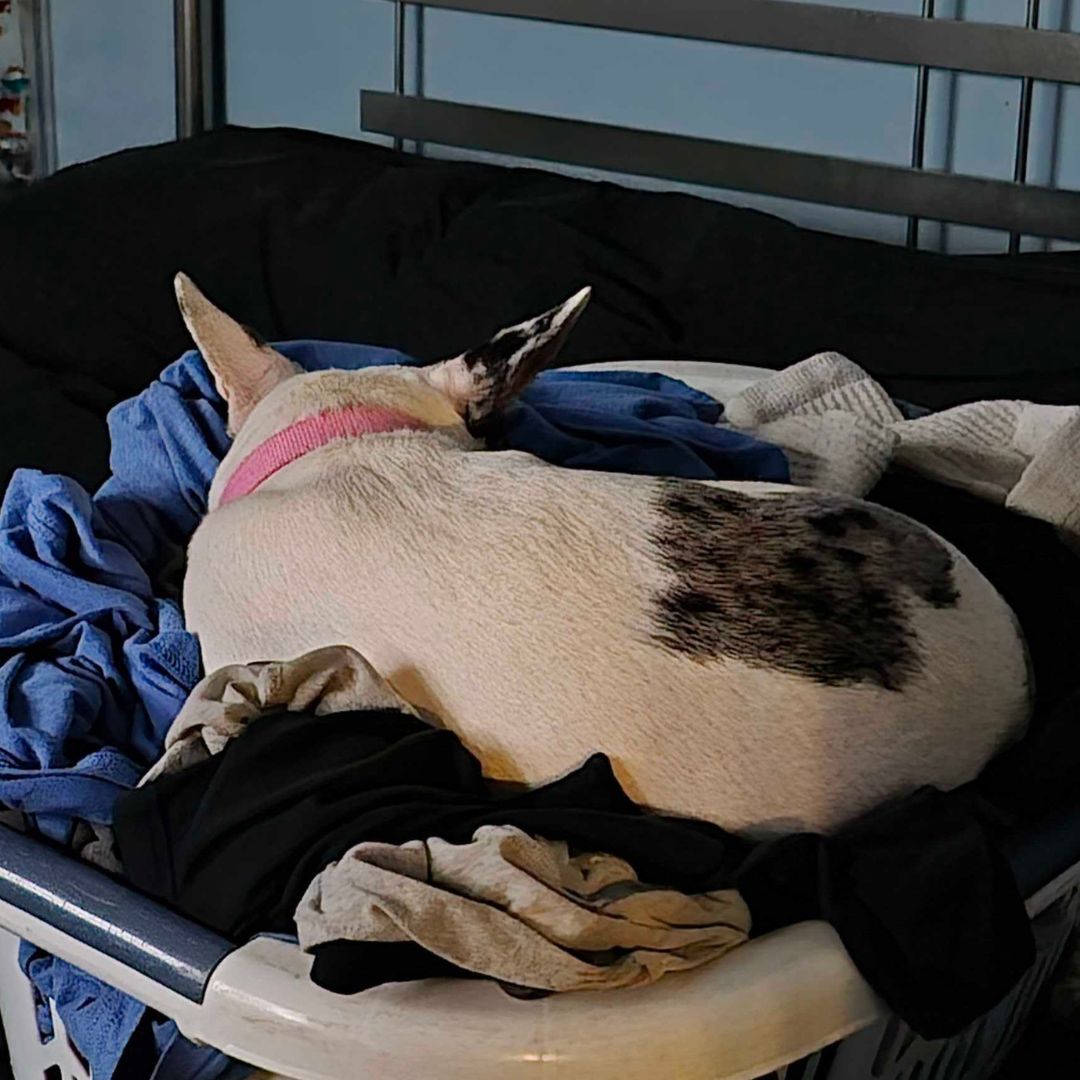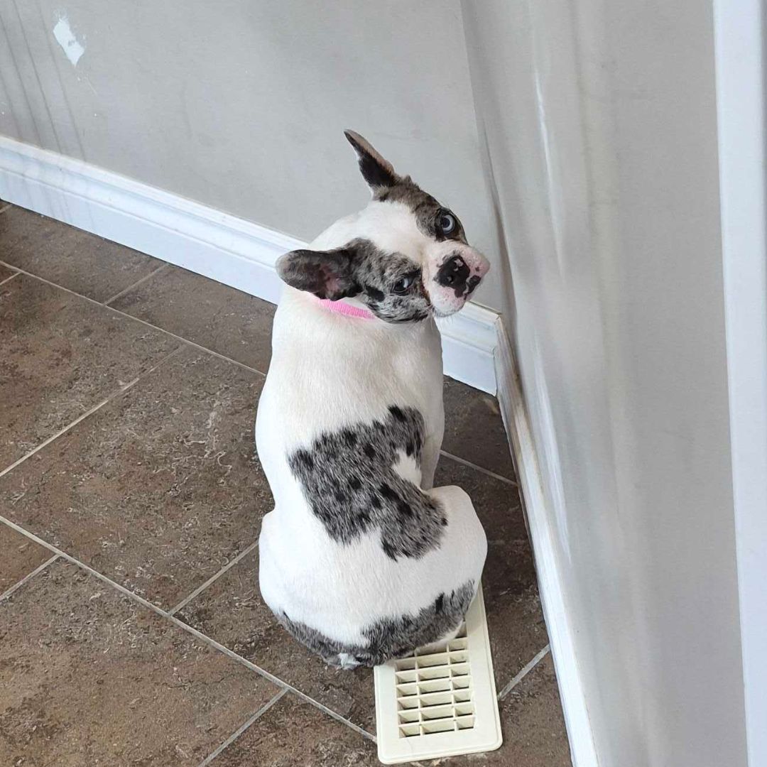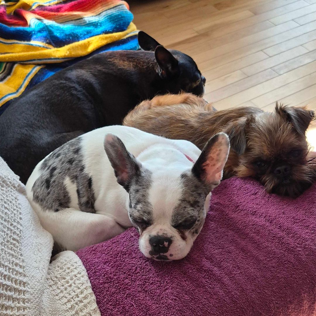 This Boston Terrier-Frenchie mix is the kind of dog who doesn’t believe in personal space. If you sit down, she’s in your lap. If you lie down, she’s tucked up by your neck. If there’s a cozy spot beside you, Holly has already claimed it.