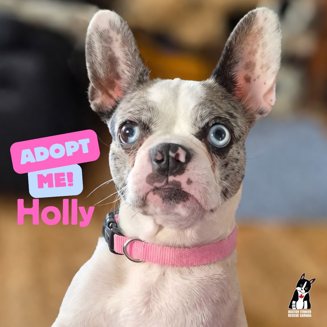 HOLLY • SPAYED BOSTON TERRIER-FRENCHIE MIX • AGE 5 • WEIGHT 17 LBS • DOGS YES • CATS? • KIDS 8+ • FOSTERED IN SASKATOON, SK