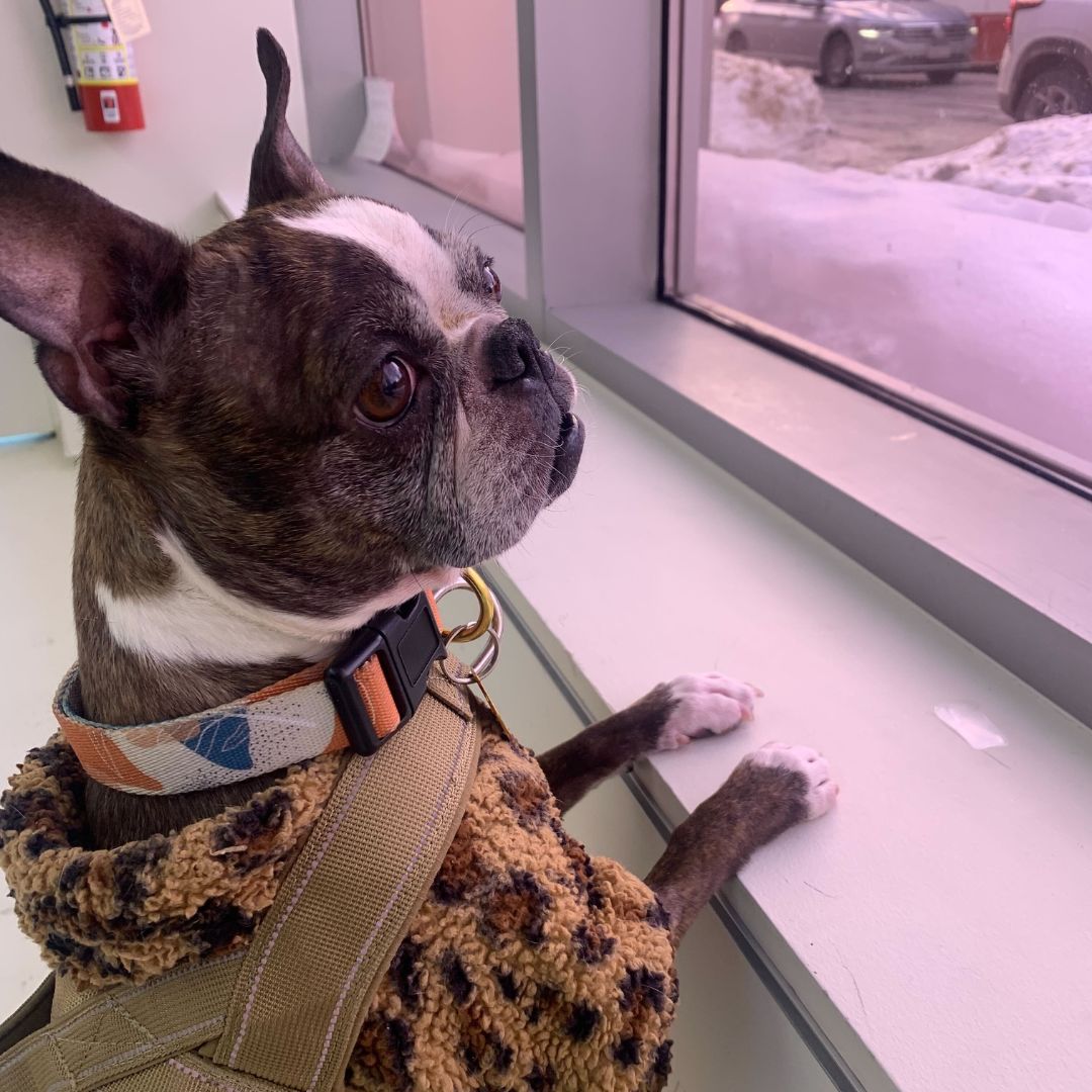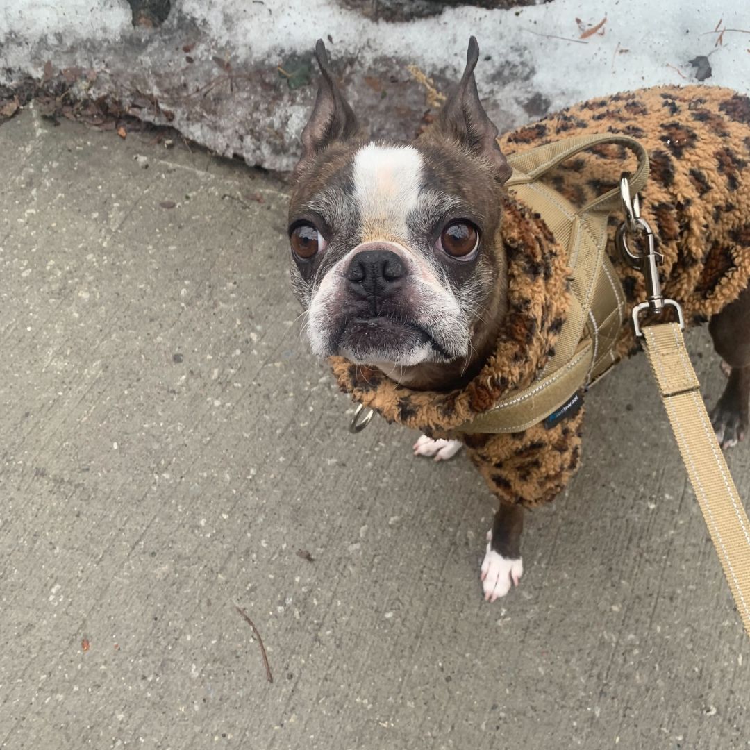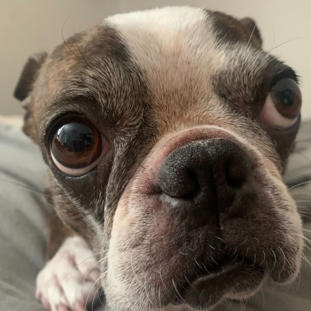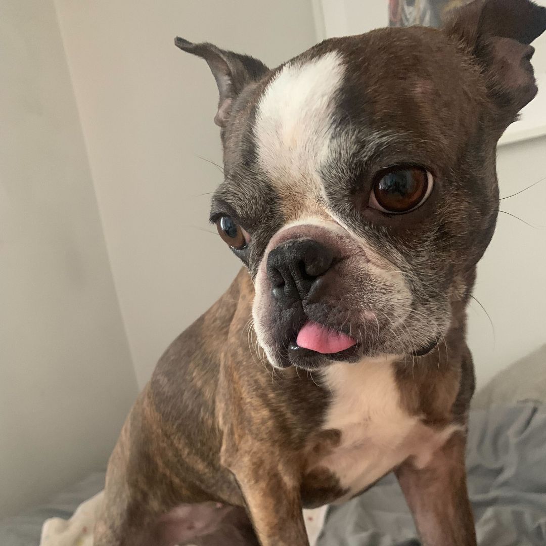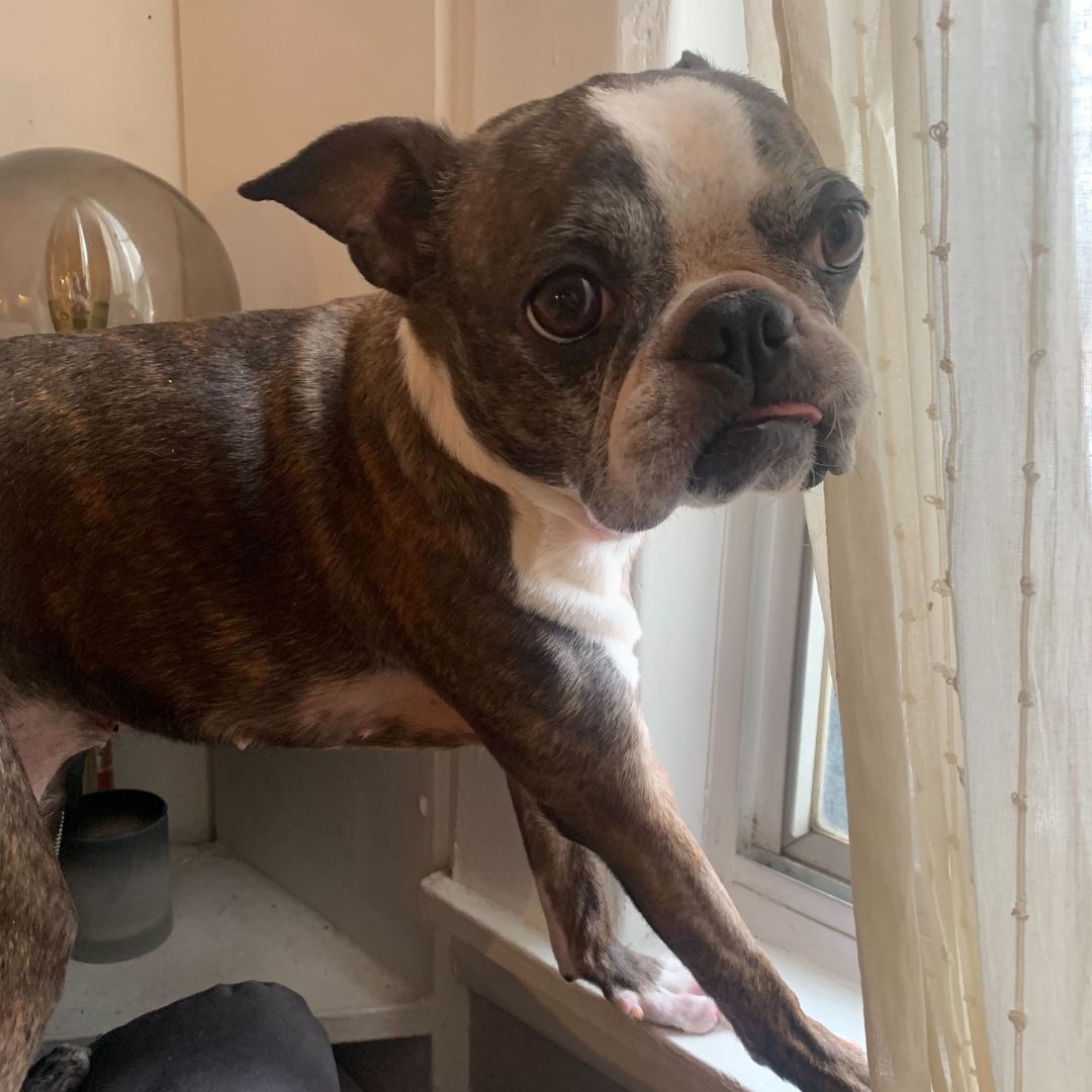 She also enjoys making surprise appearances on video calls, because clearly every meeting could benefit from a Boston Terrier cameo.