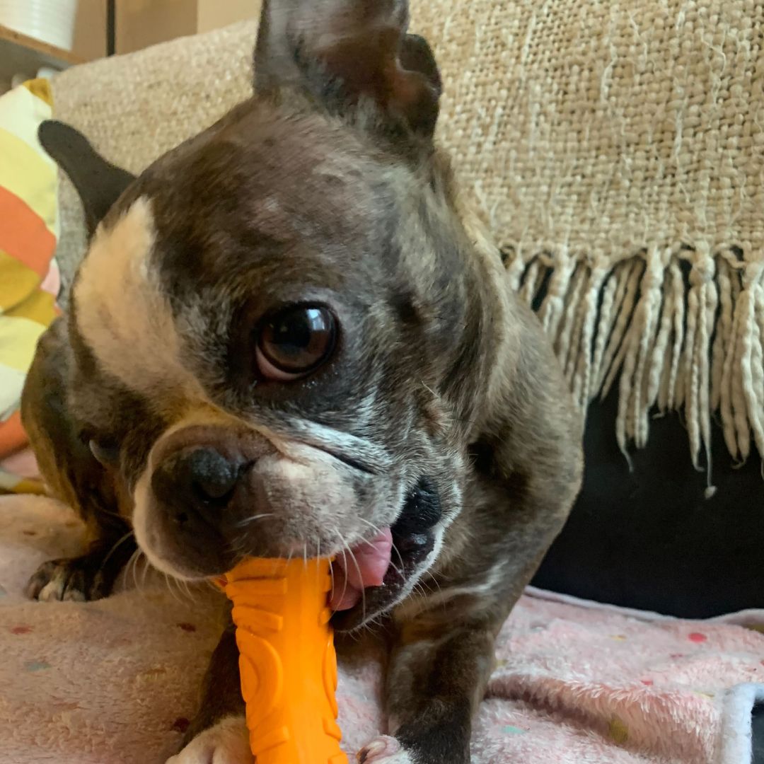 She’s generally a quiet girl, but every Boston has their moments – and Honey’s toy-time zoomies are pure Boston Terrier silliness.