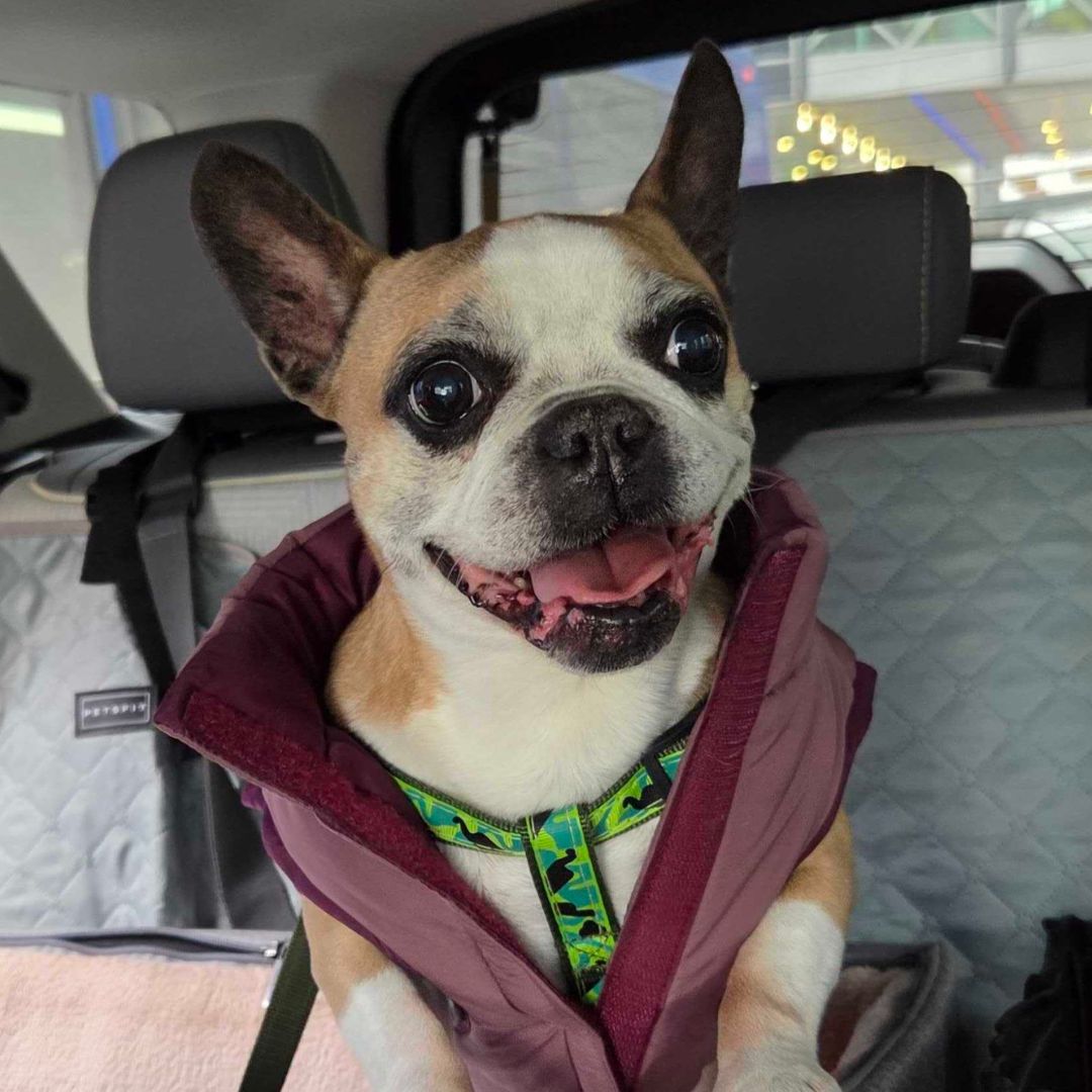Minnie and Ava came to our attention when one of our volunteers saw a “free to a good home” ad. After their owner’s passing, Minnie, a nine-year-old Boston/Frenchie mix, and Ava, a seven-year-old Schnauzer, suddenly found themselves homeless. We stepped in right away to ensure they were safe and could get the TLC they needed after experiencing such a big change.