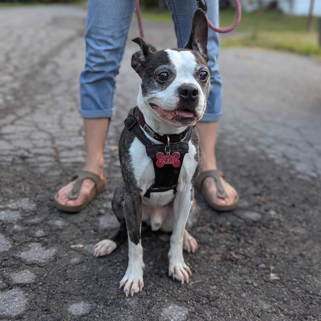MORTY • NEUTERED BOSTON TERRIER • 10 YEARS • 24 LBS • DOGS NO • CATS YES • KIDS 12+ • FOSTERED IN OTTAWA, ON